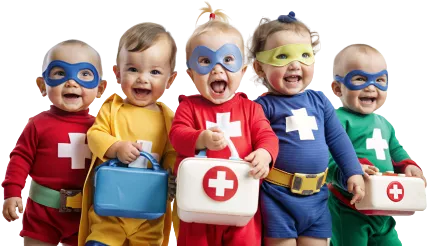Babás, avós, professores e outros cuidadores que trabalham com crianças e precisam estar preparados para responder a incidentes e acidentes comuns.